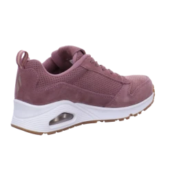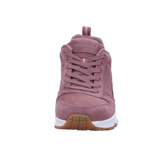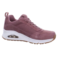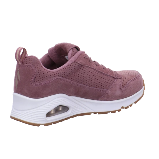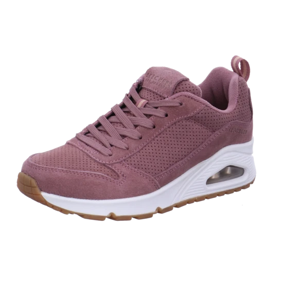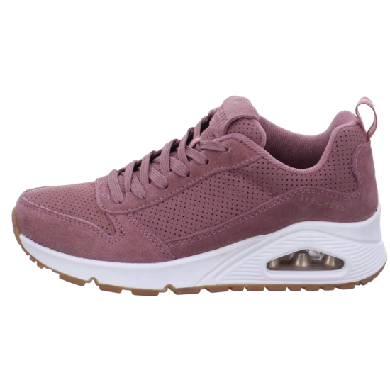 Modisches Aussehen und luftgepolsterten Tragekomfort bietet der SKECHER Street Uno – Two For The Show Schuh. Klassischer Sneaker zum Schnüren mit einem Obermaterial aus weichem Wildleder sowie Ziernähten, Overlay-Akzenten und Perforationen. Air Cooled Memory Foam Einlegesohle, sichtbare Zwischensohle mit Luftkissen-Dämpfung.